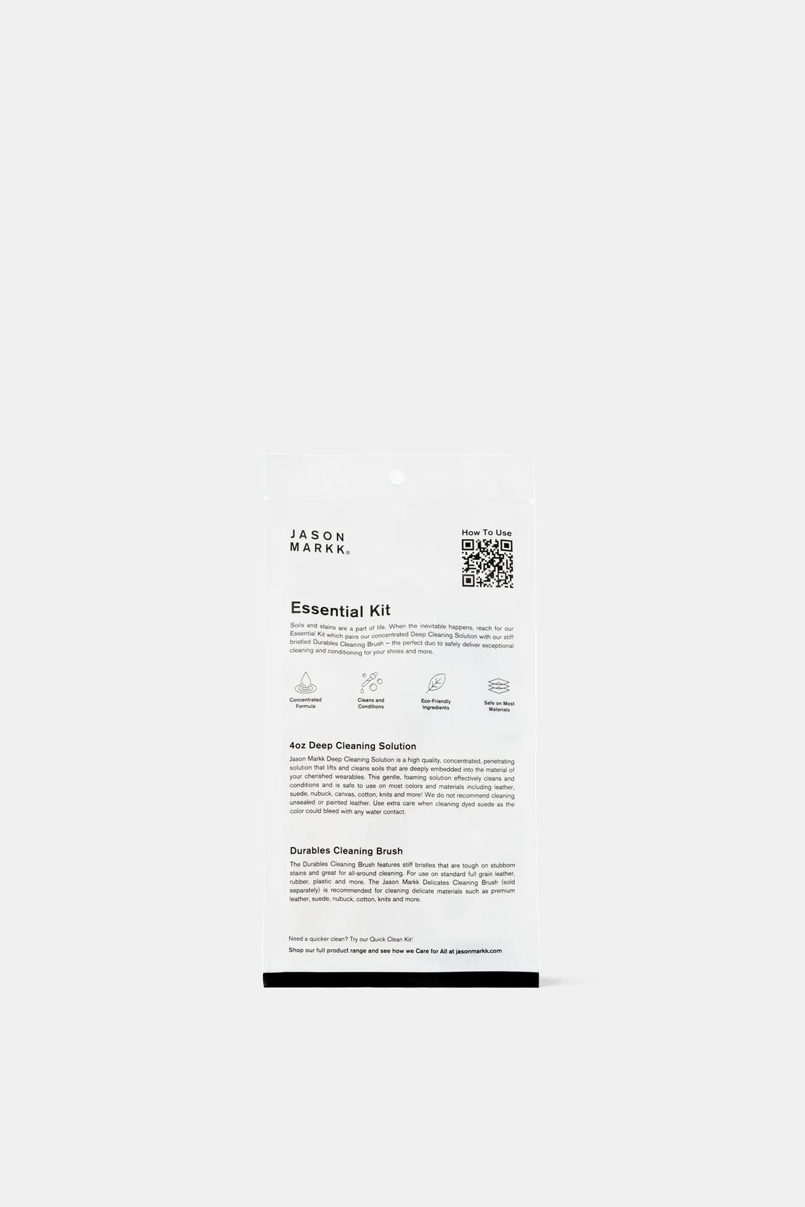 Soils and stains are a part of life. When the inevitable happens, reach for our Essential Kit which pairs our concentrated Deep Cleaning Solution with our stiff bristled Durables Cleaning Brush — the perfect duo to safely deliver exceptional cleaning and conditioning for your shoes and more.