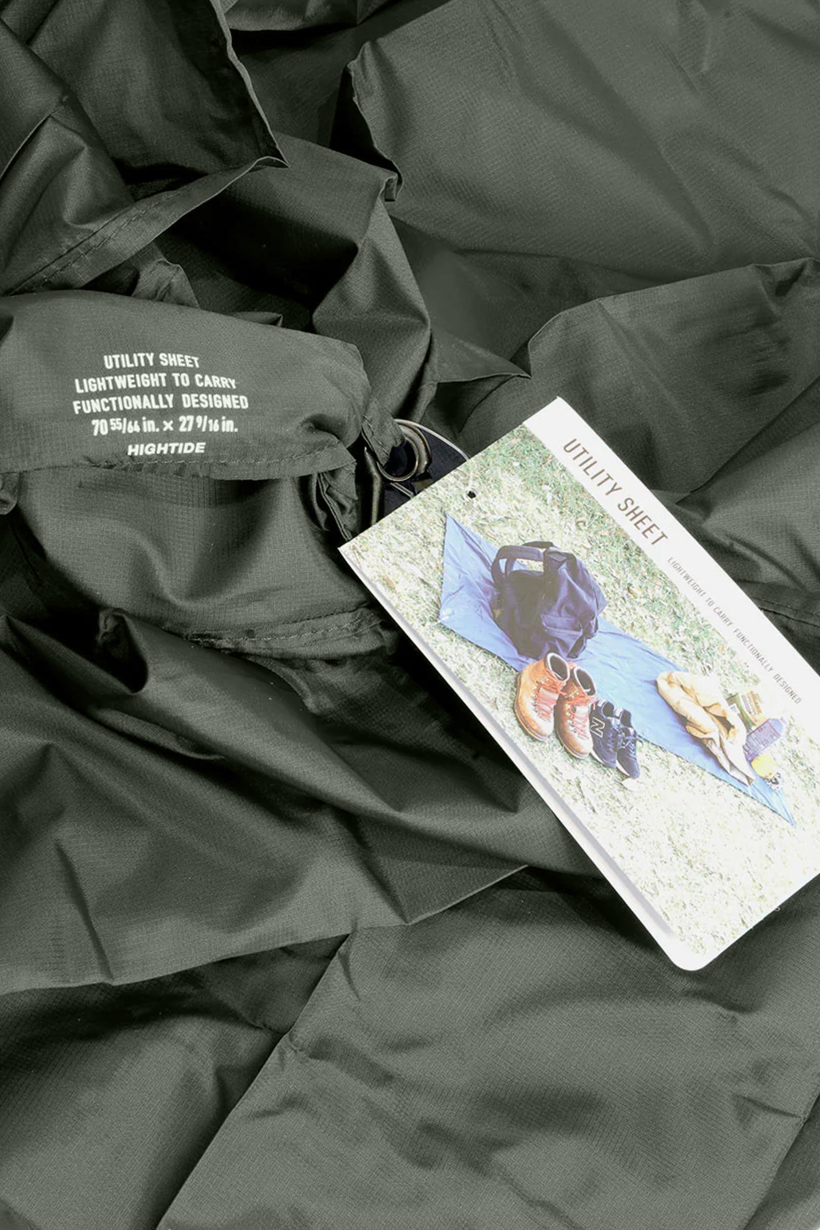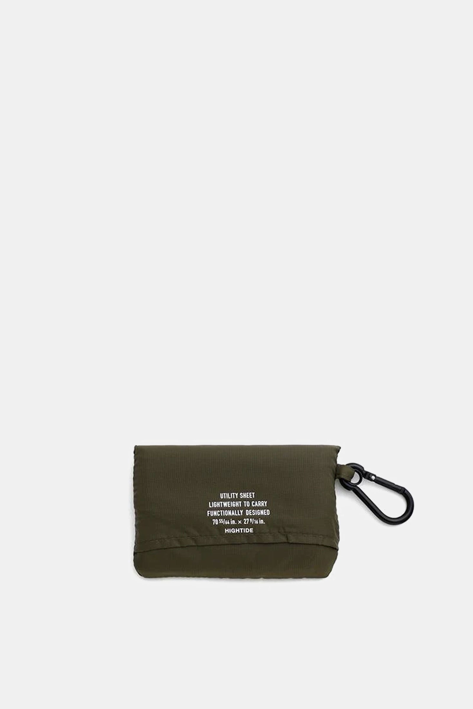 A portable nylon picnic blanket with a matching carabiner by Hightide.