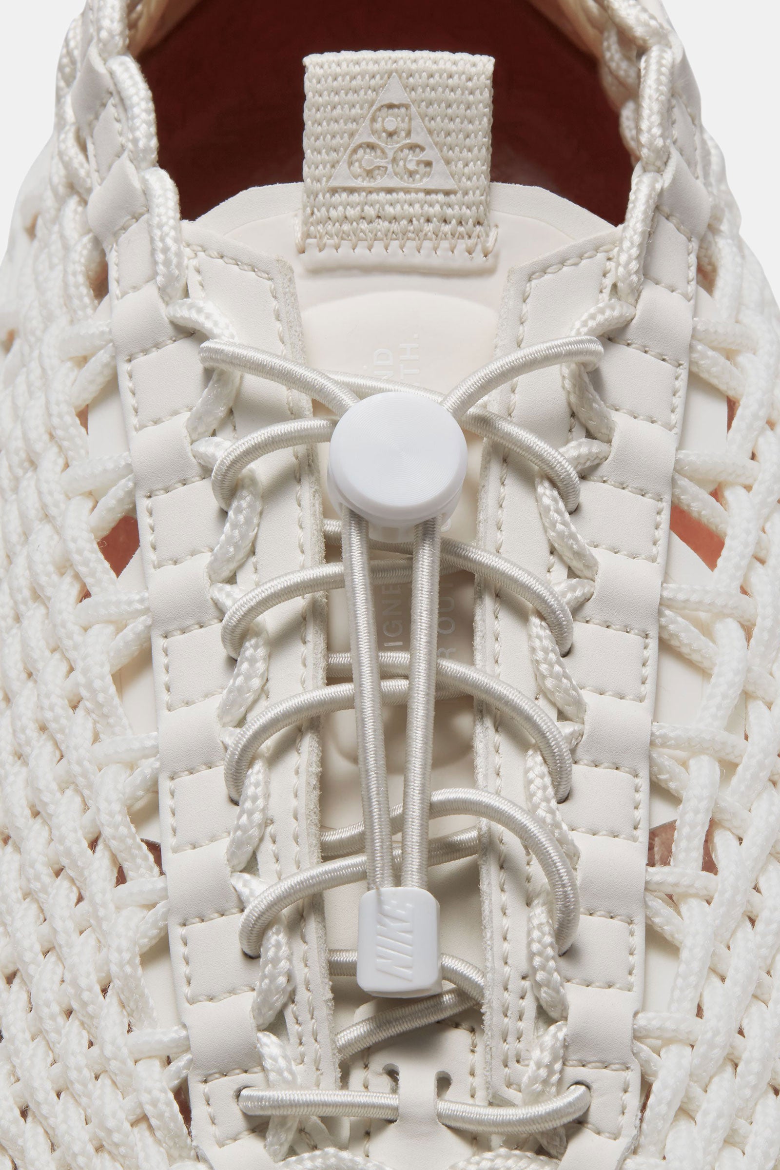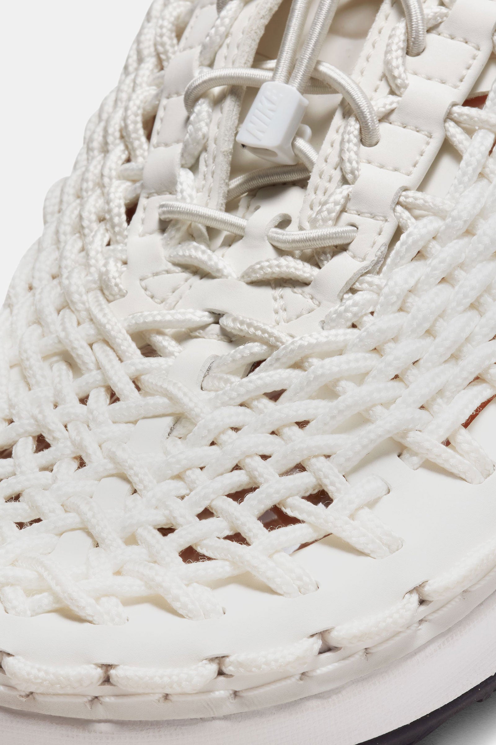 Pull tabs created from cord are a continuation of the shoe body for a streamlined look.